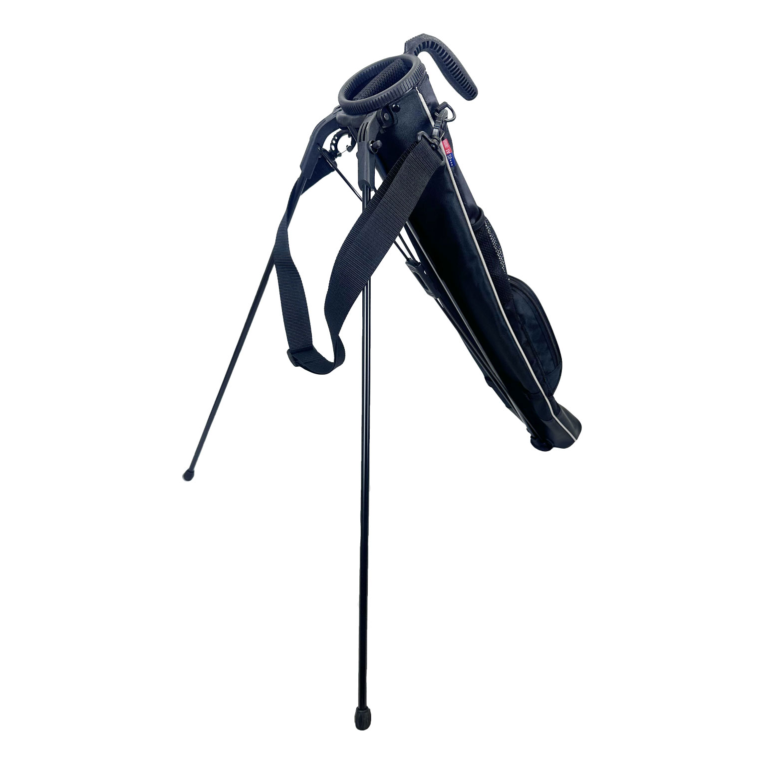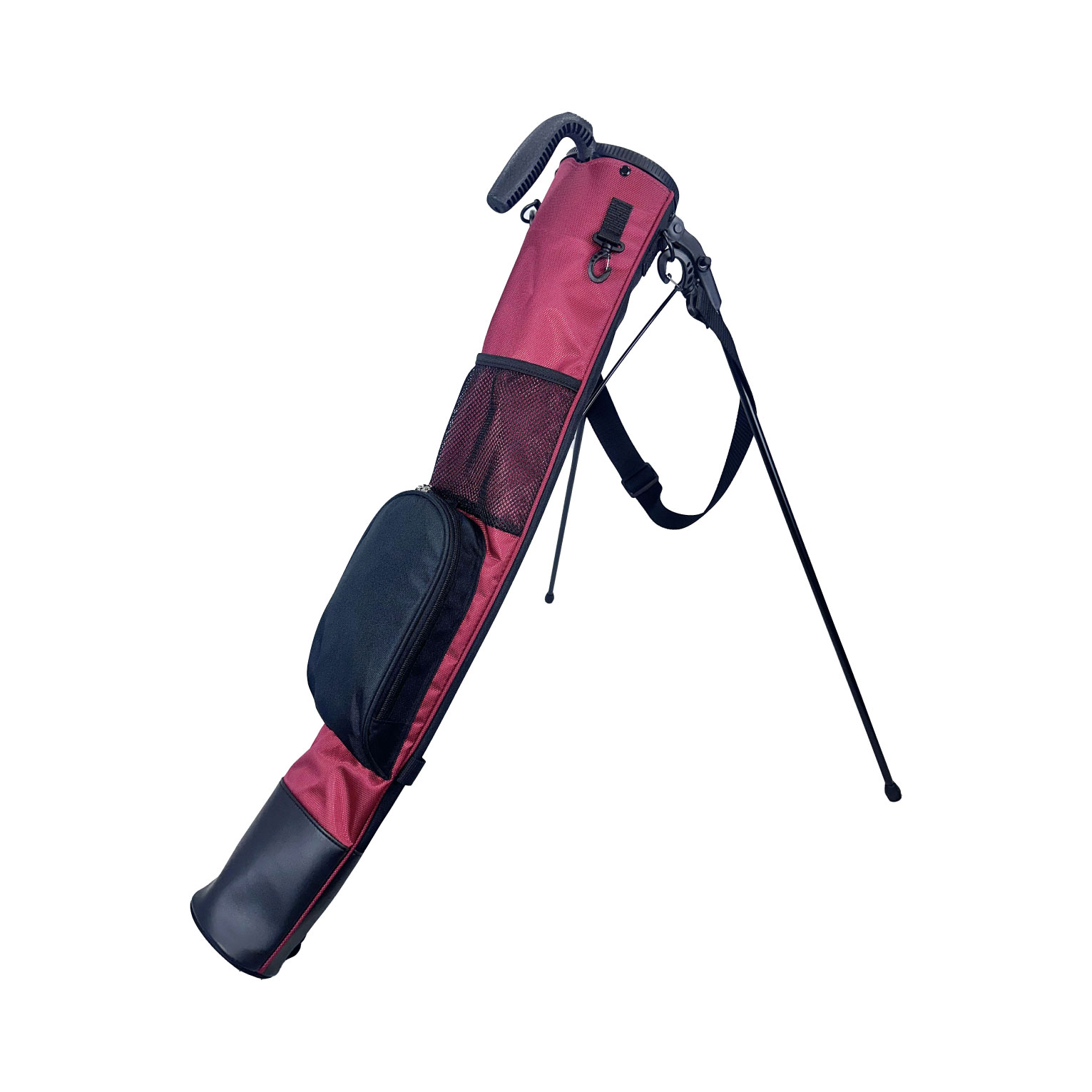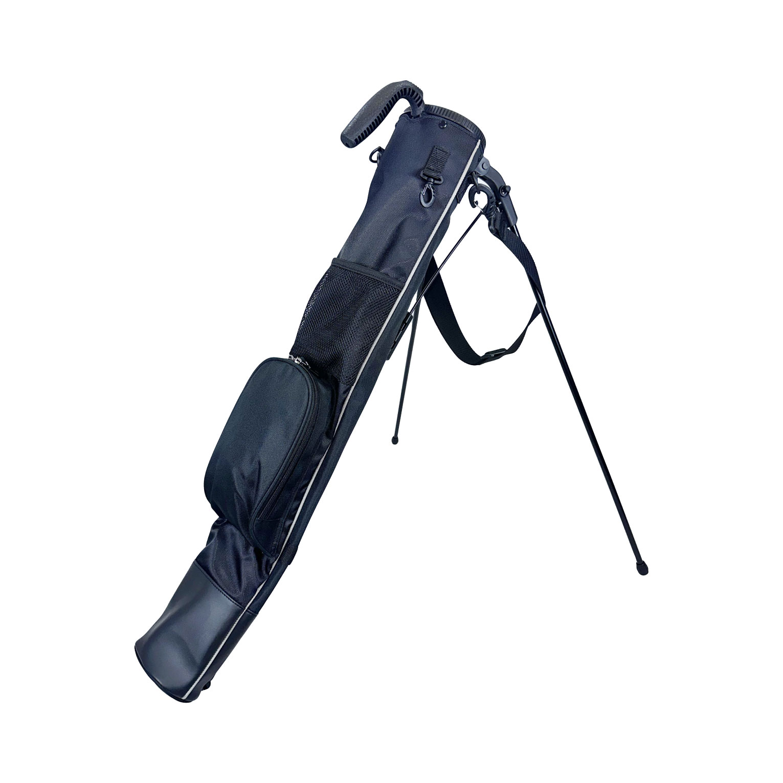 練習場、ラウンド中のグリーン周りでの使用で便利なスタンド付きのクラブケース。